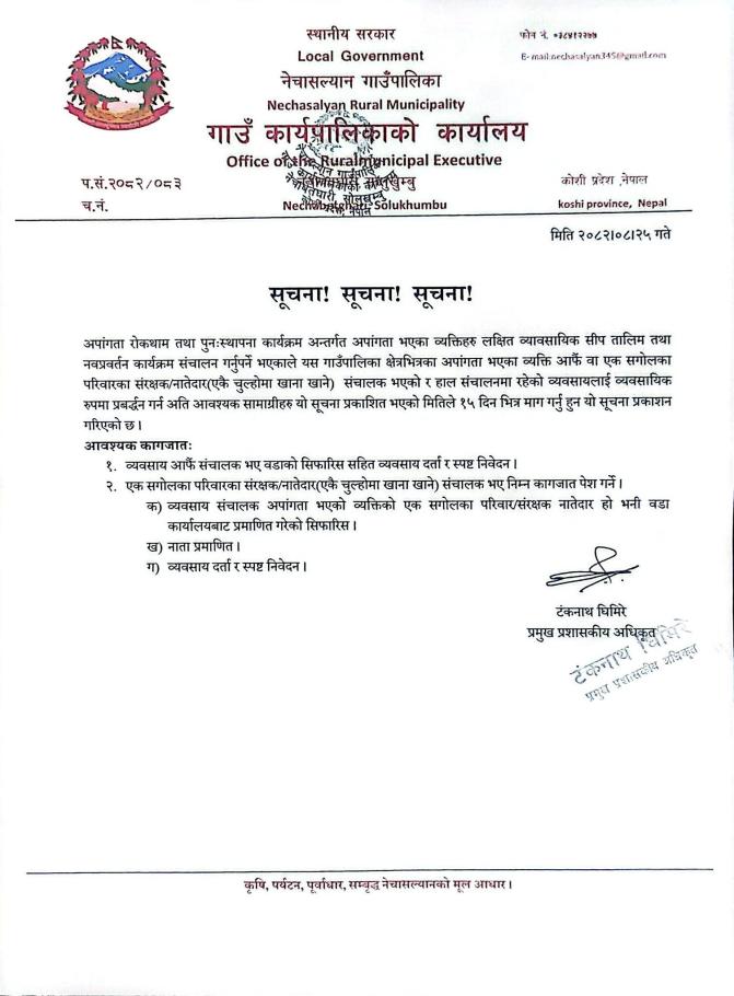 अपाङ्गता रोकथाम तथा पुनःस्थापना कार्यक्रम सम्बन्धी सूचना ।