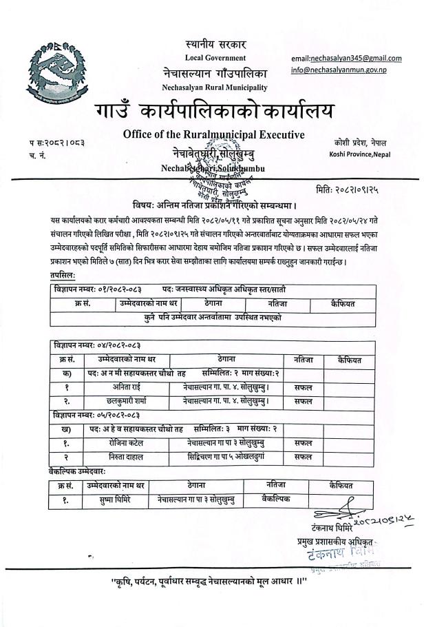 अन्तिम नतिजा प्रकाशन गरिएको सम्बन्धमा।