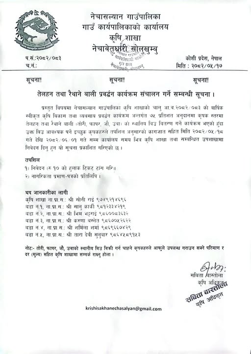 तेलहन तथा रैथाने बाली प्रवर्द्धन कार्यक्रम संचालन गर्ने सम्बन्धी सूचना ।