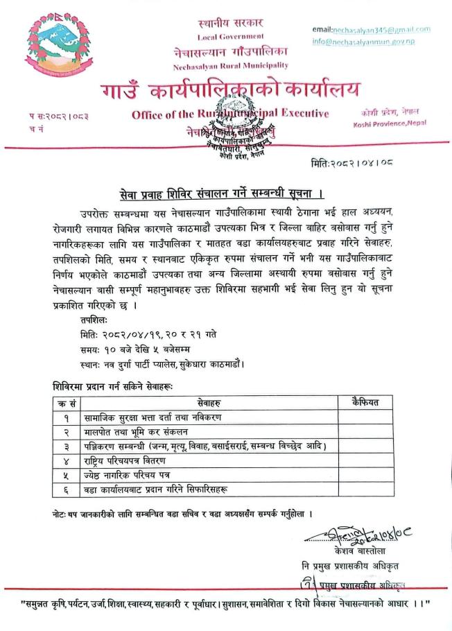 सेवा प्रवाह शिविर संचालन गर्ने सम्बन्धी सूचना।